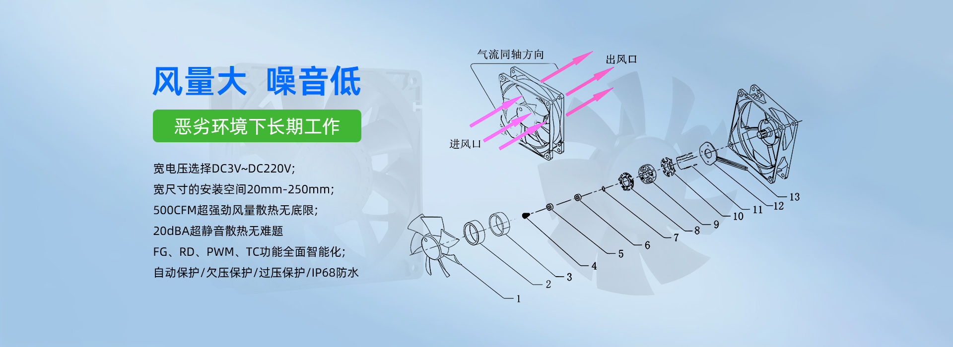 深圳市毅榮川電子科技有限公司于2005年創(chuàng)立于中國(guó)深圳、是一家專(zhuān)業(yè)研發(fā)、生產(chǎn)、銷(xiāo)售散熱風(fēng)扇的高科技企業(yè)。所生產(chǎn)的直流風(fēng)扇、交流風(fēng)扇、鼓風(fēng)機(jī)、防水/防塵風(fēng)扇、EC變頻風(fēng)扇、直流散熱風(fēng)扇、汽車(chē)散熱風(fēng)扇、靜音散熱風(fēng)扇、支架散熱風(fēng)扇、渦輪增壓風(fēng)扇、直流散熱風(fēng)機(jī)、直流離心風(fēng)機(jī)、直流鼓風(fēng)機(jī)、鼓風(fēng)機(jī)廠家、新能源風(fēng)扇、無(wú)刷馬達(dá)等,已廣泛應(yīng)用于:通訊設(shè)備、UPS電源、醫(yī)療器械、電焊機(jī)、工控設(shè)備、家用電器、空氣凈化行業(yè)、汽車(chē)行業(yè)、投影儀、美容儀器、運(yùn)動(dòng)器材等行業(yè)領(lǐng)域。